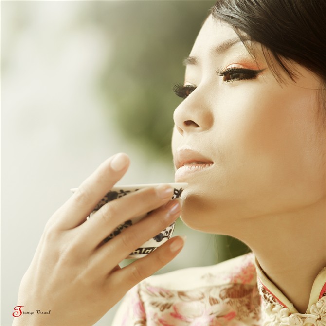紫砂清浅暗浮香,轻啜凝思唇染芳。