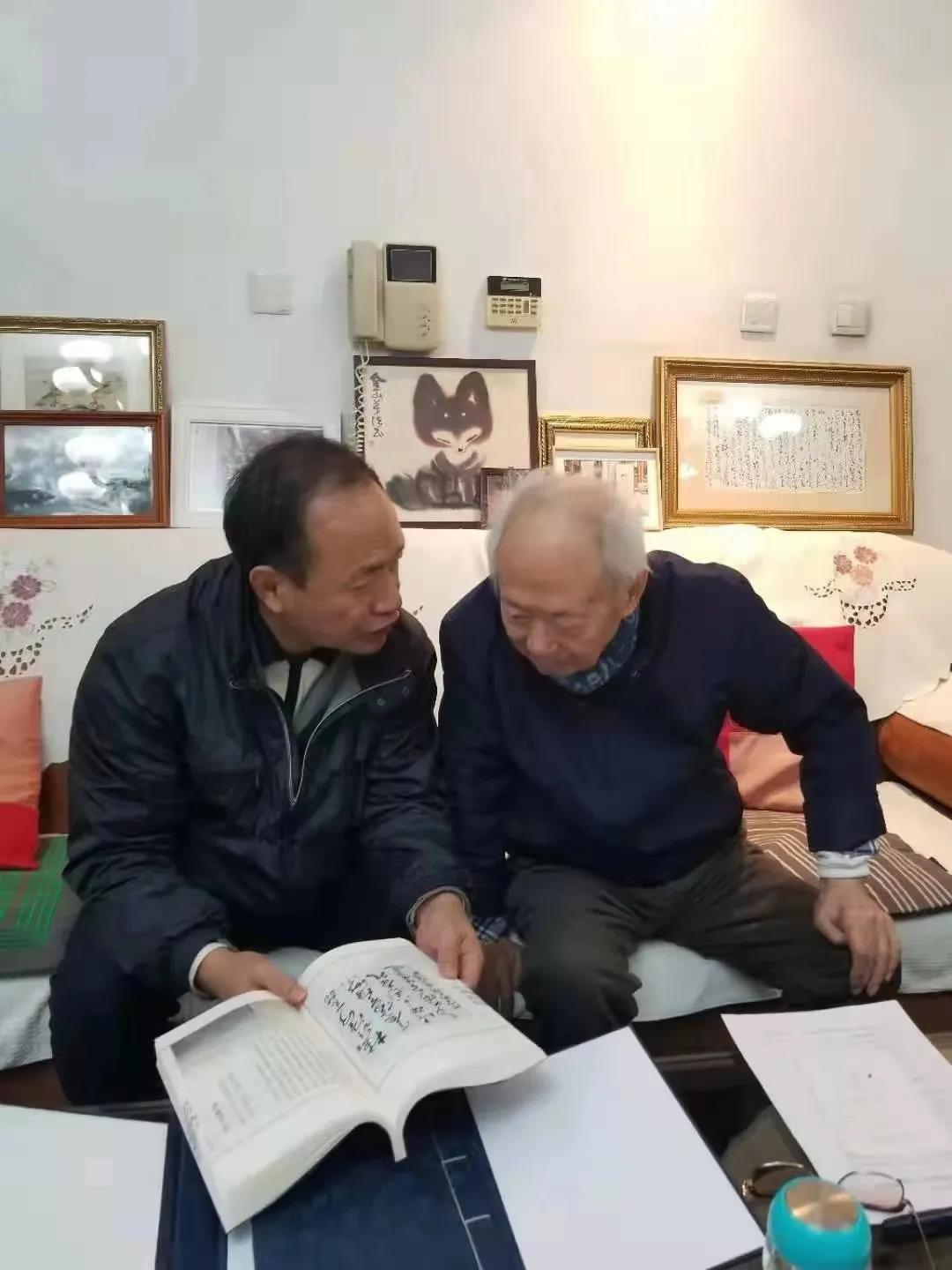 周文彰会长向沈鹏先生汇报了中华诗词学会换届以及工作开展情况。并将自己新近创作的《诗咏运河》一书敬赠沈鹏先生。沈鹏先生一边翻阅,一边赞许。尤其翻阅到《七律·扬州》时,沈鹏先生还饶有兴致地吟诵起来。