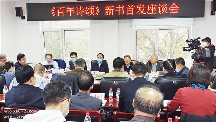 与会领导和嘉宾在会上发言,对新书首发表示祝贺,同时围绕《百年诗颂》作品的情感表达、艺术价值、教育作用和政治意义等进行了座谈交流。