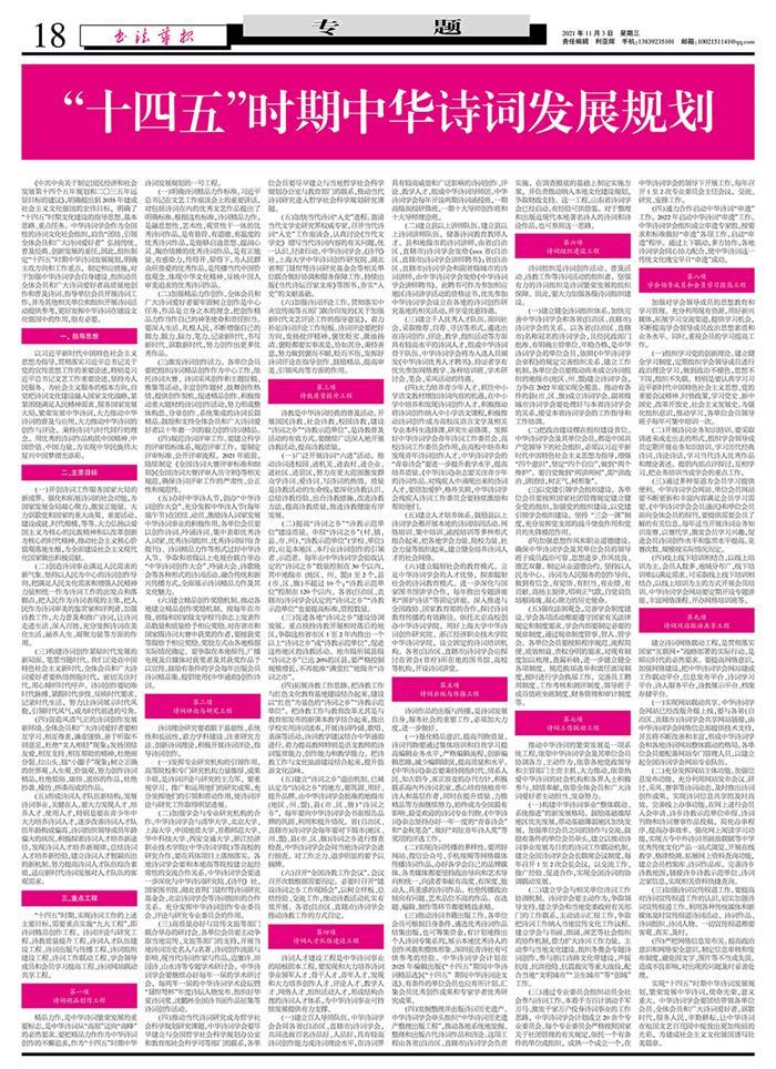 全文刊发《“十四五”时期中华诗词发展规划》