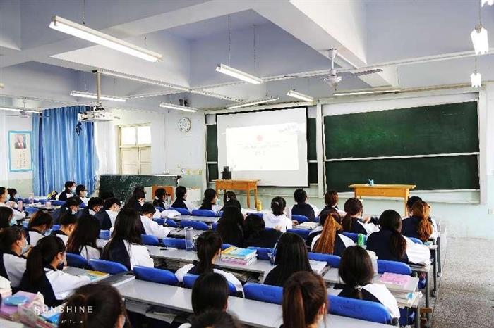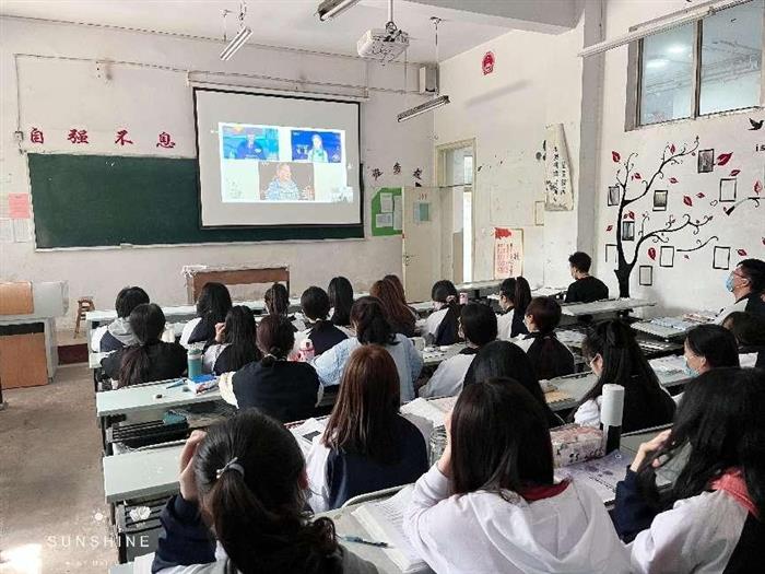 (临汾职业技术学院学生在教室观看讲座)