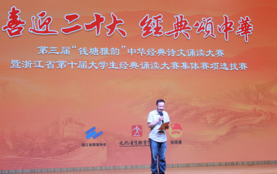 6月16日晚,浙江经济职业技术学院文化素质教育中心携手校团委,在浙江省朗诵学会的学术指导下,成功举办“喜迎二十大 经典颂中华”——第三届“钱塘雅韵”中华经典诗文诵读大赛暨浙江省第十届大学生经典诵读大赛集体组选拔赛。经过激烈角逐,汽车技术学院《月光下的中国》、物流与供应链管理学院《中华颂》和文化艺术学院《请党放心,强国有我》三个节目选送省赛。