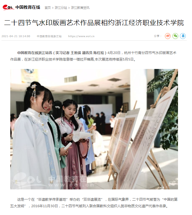 9月29日,凤凰网以《探诗路、品宋韵——浙江经济职业技术学院举行诗路行旅活动》为题,报导了文化素质教育中心举办的“行旅诗路”系列活动,该活动是学校诗教特色理论的创新探索,也是践行、弘扬浙江诗路文化和宋韵文化的有益尝试。