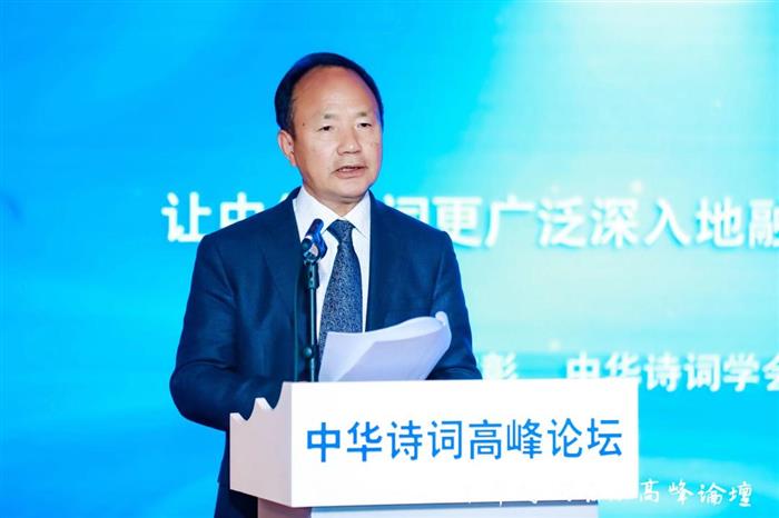 中华诗词学会会长周文彰作了题为《让中华诗词更广泛深入地融入数字化时代》的致辞。