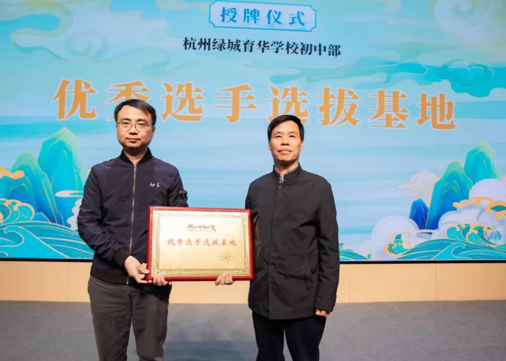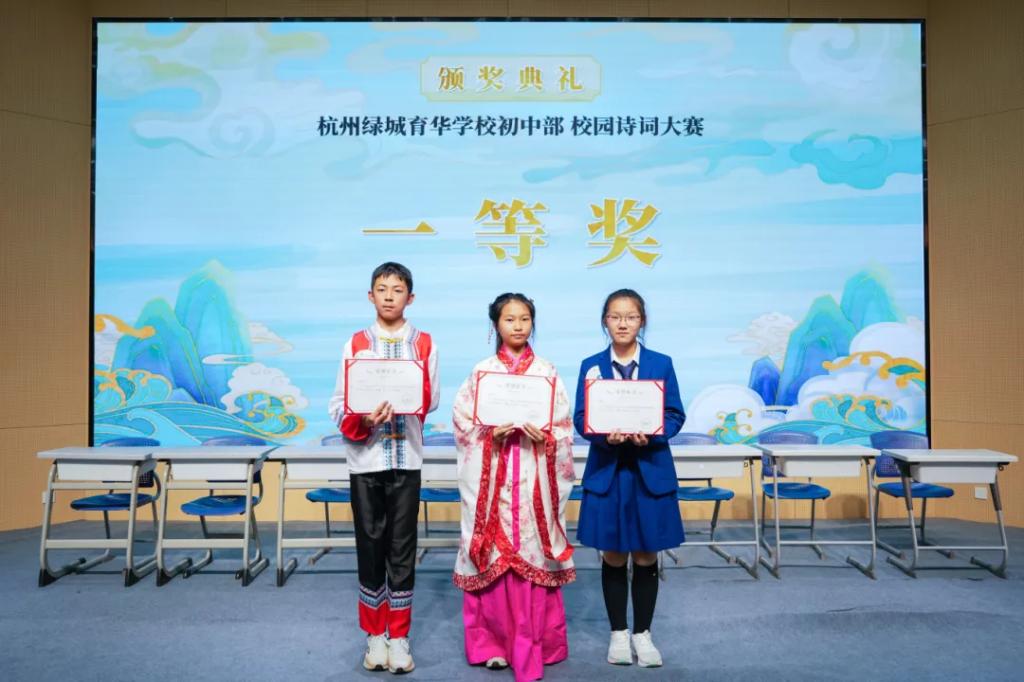 杭州绿城育华学校初中部历来注重文学氛围的营造。每年九月,语文组会举办诗歌朗诵大赛,并在学科节上举行“读诗、品诗、写诗”等系列活动。此外,文学社也会不定期举行“飞花令、诗词竞赛”等活动。育华学子始终以自己的方式表达着对中华诗词的理解和热爱。活动现场,浙江诗词大会组委会为学校授予了“优秀选手选拔基地”荣誉牌匾。
