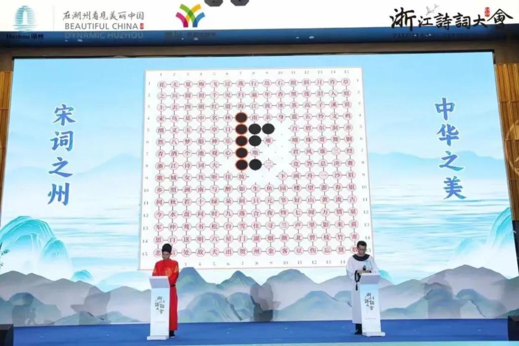 诗词竞答大赛是以诗词知识为比拼内容的竞技展示,本次大赛以“宋词之州·中华之美”为主题,活动内容立足湖州深厚的宋词文化底蕴进行设计,将湖州作为展现江南文化这一中华之美的特色典范进行塑造,通过宋词、宋韵和湖州历代文化元素,在大赛题库命制和活动环节设置上紧密结合湖州相关的人文历史,重点考察湖州宋词知识,回首湖州千年文脉,展现湖州象征中华之美的文化元素,彰显宋韵文化内涵。