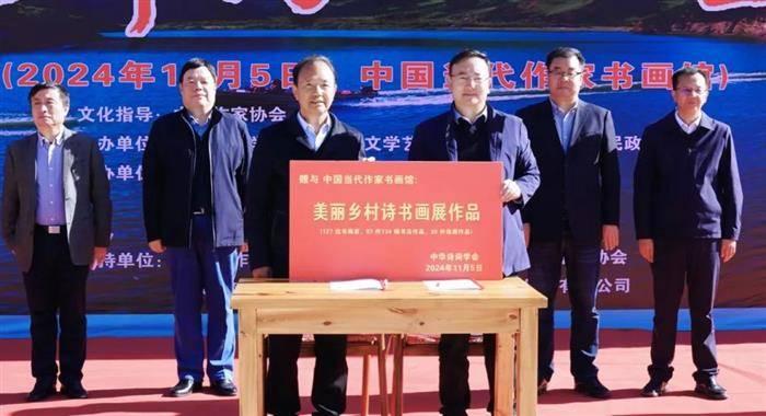 11月5日上午,“魅力临潭·美丽乡村”诗书画展暨作品捐赠仪式在甘肃省甘南藏族自治州临潭县举行。中华诗词学会会长周文彰致辞并宣布开幕,中华诗词学会副会长张存寿、秘书长杭中华,甘肃省文联党组成员、副主席王正茂,甘肃省诗词学会会长成文生、副会长朱殿臣,甘南州委常委、宣传部部长杨东平,州委宣传部副部长、州文联党组书记、主席赵凌宏等出席活动。县委副书记、县长宋国全致辞,县委常委、副县长张磊主持。