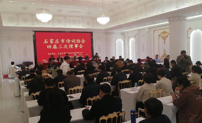 3月23日上午,石家庄市诗词协会四届三次理事会召开。会长韩存锁,名誉会长张弓月,常务副会长陈金锁、张金亭、赵建军,李玉法,副会长张雷、王海亮、霍文国、张菊莉、杨聚民、张凤奇、封明彦、杜志勇、苏卫强,诗协秘书处全体同志,市诗协直属部门负责人,全体理事及获奖代表共90多人参加了会议。特别邀请了省诗协常务副会长兼秘书长梁剑章,市诗协顾问郭庆华、李文娟,赞助者代表盖冬梅、武彦阳、樊星等莅临大会。陈金锁主持了大会。