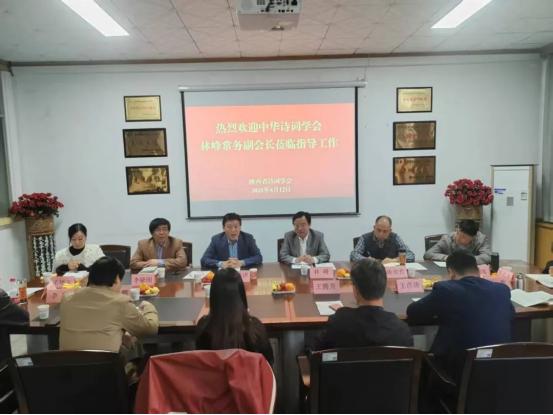4月12日下午,中华诗词学会常务副会长林峰赴陕西省诗词学会指导工作。陕西省诗词学会会长刘炜评,常务副会长陈俊哲,副会长李晓刚、王彦龙、马瑀、毛艳飞等学会领导及办公室、编辑部、学术部等部门相关负责人参加座谈。座谈会由刘炜评主持。