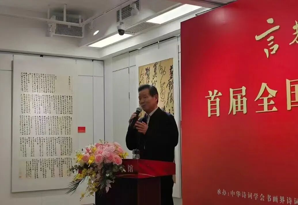 4月26日上午,“言恭达助学行动”首届全国诗书画展在北京琉璃厂一得阁众艺生辉美术馆开幕。国家行政学院原副院长、中华诗词学会会长周文彰,民政部原部长黄树贤,新华社原副社长刘正荣,中国文联原副主席、书记处书记杨承志,“言恭达助学行动”发起人、教授言恭达,中华诗词学会秘书长杭中华,全国教育书画协会顾问王曙章,中国外文局文化传播中心副主任苏鄂,中华诗词学会诗教部副主任、策展人李建春,《中华诗词》杂志副主编潘泓,中国艺术研究院中国篆刻艺术院理论部主任冯宝麟,中华诗词学会书画界工委副主任崔伟,中华诗词学会书画界工委副主任、众艺生辉美术馆馆长曹玉文等嘉宾,来自黑龙江、上海、河北、陕西等地获“言恭达助学行动”首届全国诗书画展展览奖的部分代表,以及部分大中学校的师生近百余人参加。