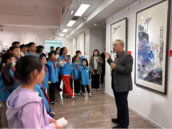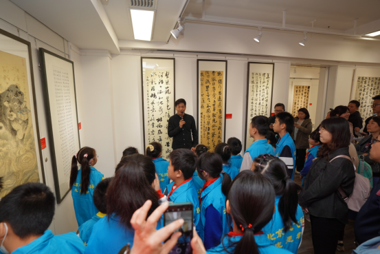 曹玉文馆长主持开幕式。仪式开始前,由“言恭达助学行动”首届全国诗书画展览策展人李建春、获奖代表老师王文涛,分别围绕“以美育传承三美合璧、从教育践行文化担当”,采取互动式方法,结合展厅作品,讲述了言恭达先生倡导美育从校院开始的当代意义以及“诗书画三美合璧”的方法、技巧和途径,教学相长,气氛亲和而热烈。