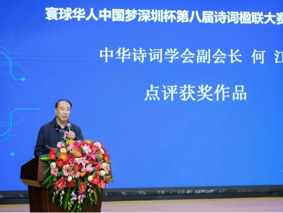 中华诗词学会副会长何江对本届深圳杯获奖作品进行了综合点评,他认为作品最鲜明的特点是打破了传统局限,将笔触锚定科技浪潮与城市发展,做到了题材创新、情志高远、艺臻化境、文脉传承四个方面要求,构建了独具深圳特色的“科技诗词”创作图景;同时用新事物,新词汇为中华诗词创新发展注入了新活力,部分作品还蕴含丰富的家国情怀。这次大赛的成功举办,体现了“中国梦·深圳杯”已具强大品牌效力和全球影响力,也证明了诗词的强大适应性与生命力。