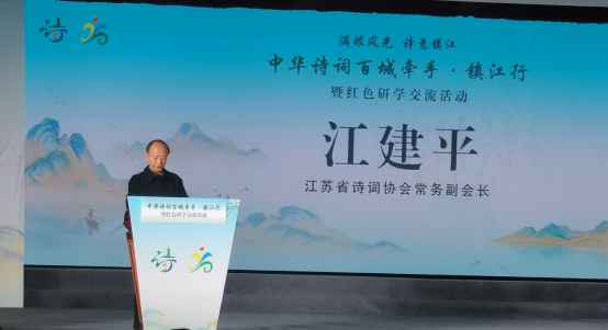 江苏省诗词协会常务副会长江建平、中华诗词学会城镇诗词工作委员会主任杨鹏飞、中国新四军研究会副会长刘春灏等领导分别致辞。他们高度评价了镇江在推动诗旅融合、赓续红色血脉方面进行创新实践所带来的显著成果。镇江市文广旅局局长陆艳华围绕“跟着诗词游镇江”项目作了专题介绍,系统展示了镇江将诗词资源转化为文旅动能的探索路径,充分展现了镇江“让诗词可感、可触、可传”的生动图景。