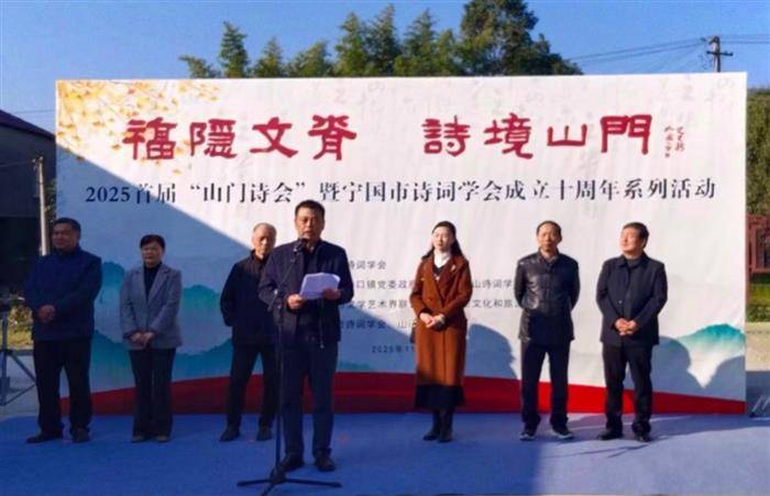 11月22日上午,“2025年首届山门诗会”暨宁国市诗词学会成立十周年系列活动在宁国市港口镇山门村成功举办。此次活动由安徽省诗词学会指导,港口镇党委政府、宣城敬亭山诗词学会、宁国市文联、文旅局联合主办,吸引皖苏浙三省近百位诗友共赴文化盛会,以诗词为媒赋能乡村振兴。